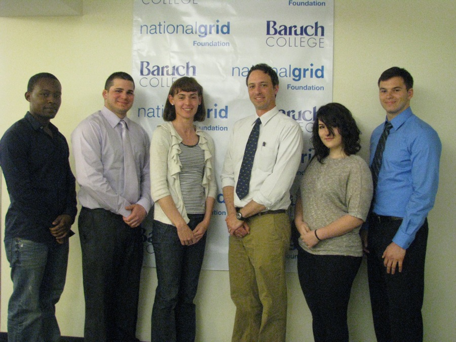 (From left to right) Baruch College students Kafula Chileshe and Frank Restaino, Professors Sarah Harney and Peter Gregory of Baruch College's Mathematics Department and Baruch College students Boris Godin and Carla D'Amore