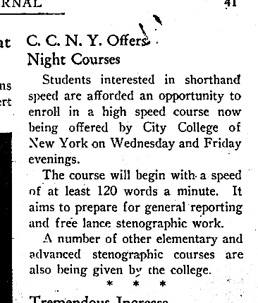 Advertisements appeared in professional journals for business courses being offered around the country. [Source: Baruch College Archives. The Business School Journal, Volume 1, Number 2 (November 1928): 41.]